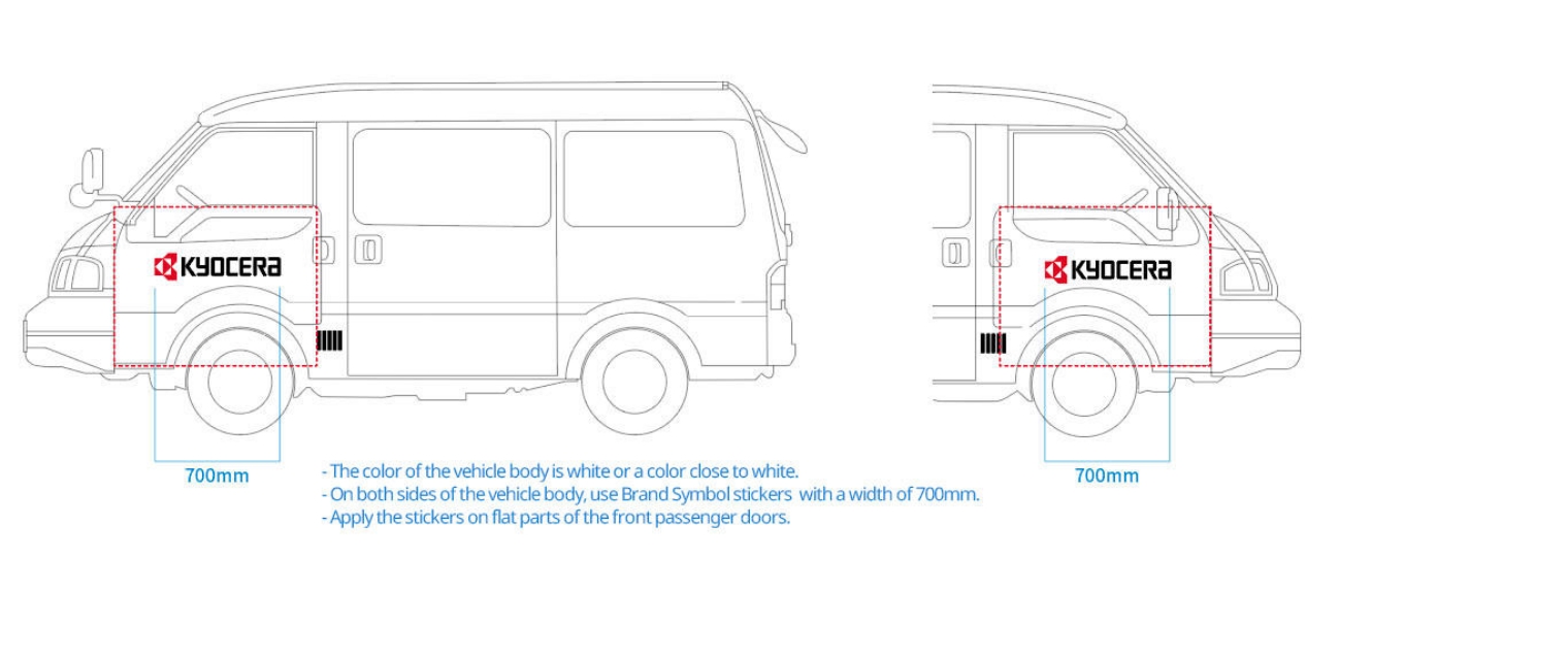 When displaying the brand symbol on company vehicles, please follow the regulations. If there are any operational difficulties in sales activities, the display may be omitted.