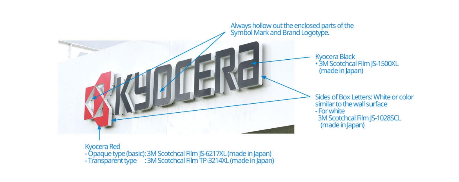 Building signs primarily serve the following purposes for displaying the Kyocera brand symbol: