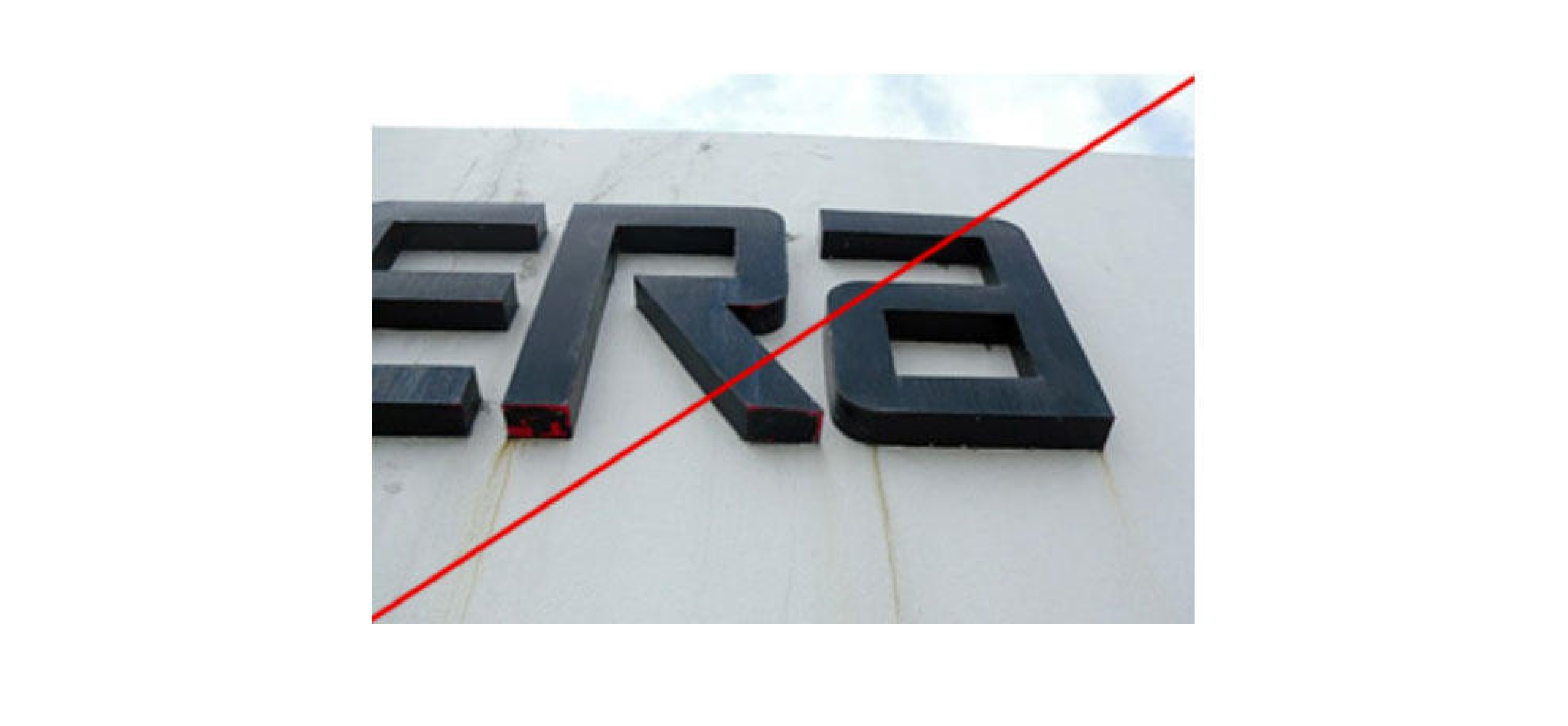 When installing wall-mounted signs, adopt the best method. Specifically, do not attach the sign directly to the wall. Use mounting brackets to float the sign from the wall. Direct mounting causes dust to accumulate on top of the sign which is then washed down by rain, leaving visible stains on the wall and impairing the appearance.