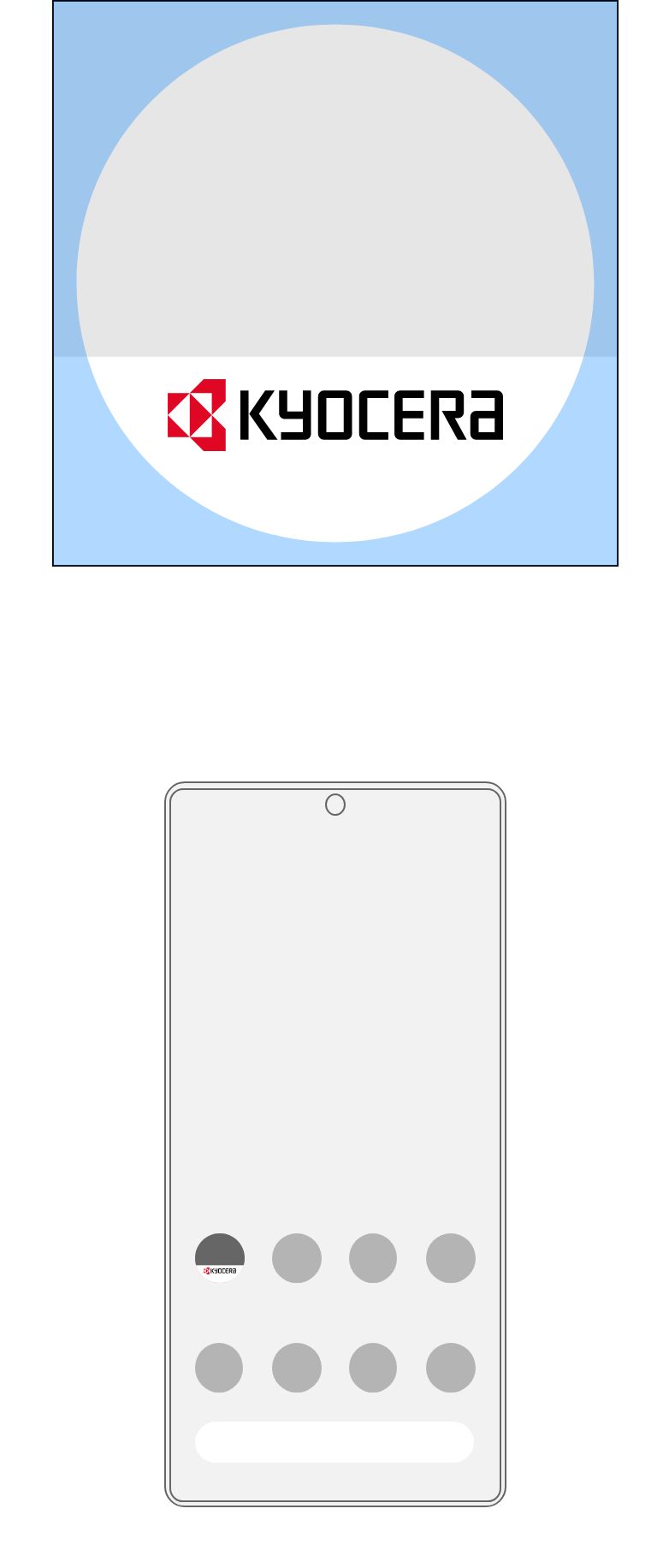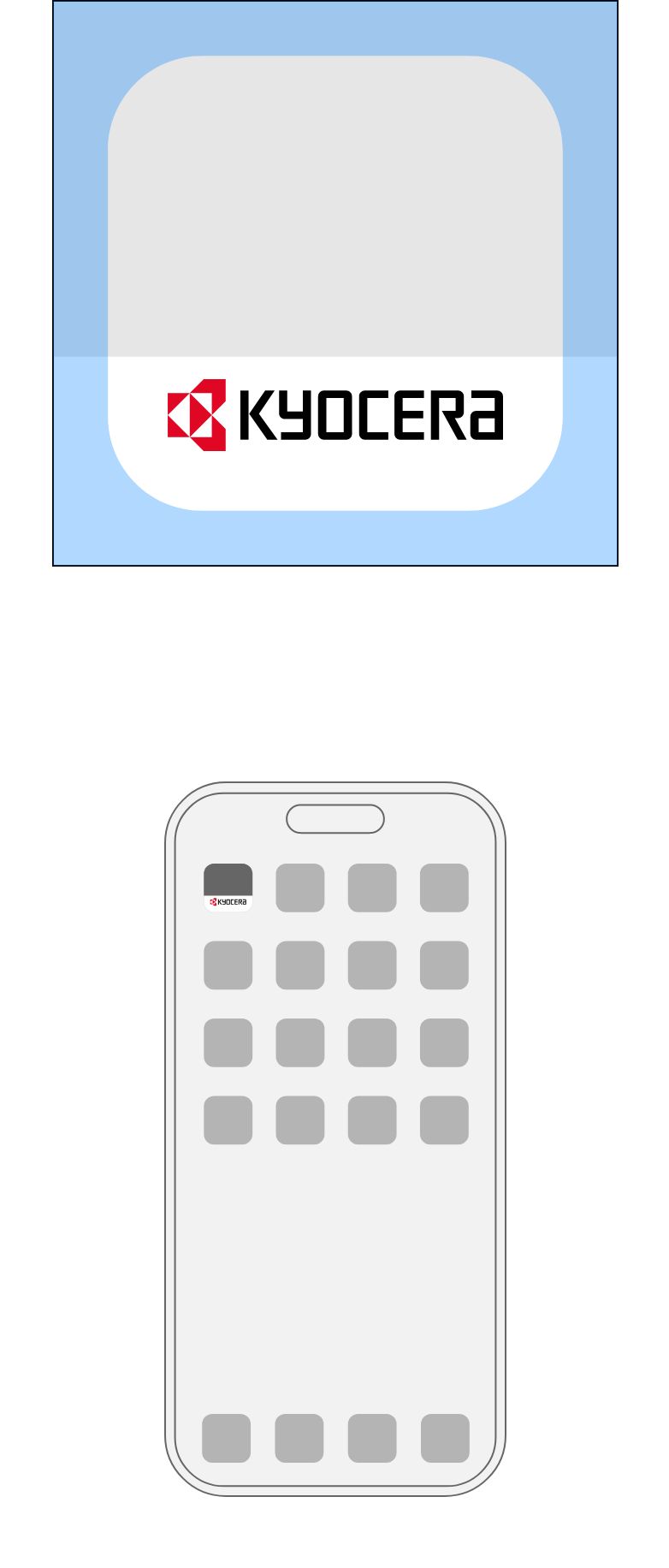 When displaying the Kyocera brand symbol in smartphone or tablet PC application icons, place the white-background brand symbol at the bottom, as shown below.